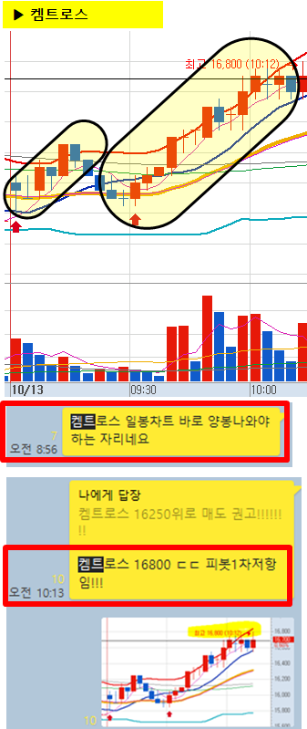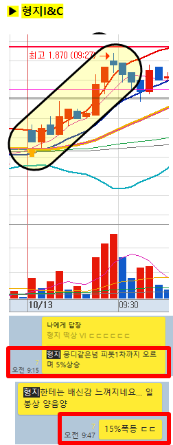 장 시작전 공유종목으로 일봉상 무조건 올라가야만 하는 자리였기에 추천하였으며 오전 中 9%이상 급등이 나왔습니다!