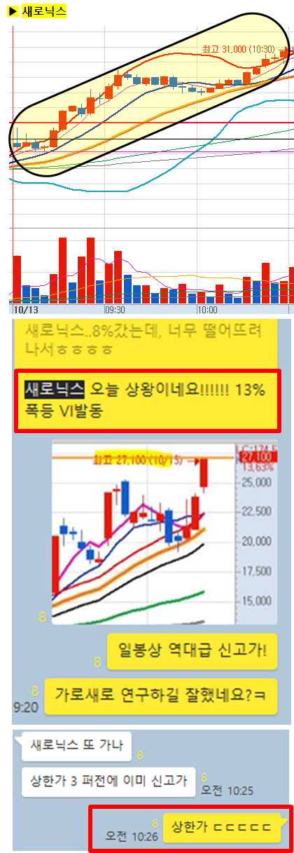 한참 낮은 가격부터 계속 언급된 종목으로 오늘 오전중에 상한가에 진입하였습니다. 일봉상 역대급 신고가 달성되었습니다!