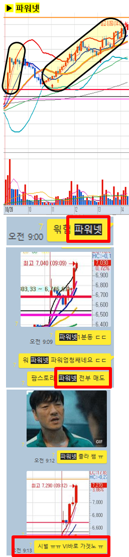 오늘은 파워넷이 14분만에 14%이상 급등이 나왔고 오후장에는 상한가 가까이 폭등이 나왔습니다. 주로 돌파 관점의 종목들이 바로바로 수익을 줬습니다.