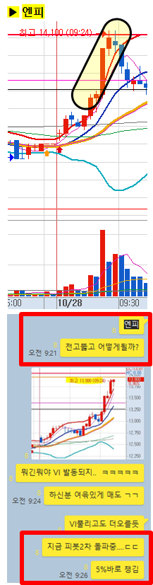 전일고점돌파전 공유한 종목으로 6분이후 바로 VI가 발동되며 5%이상 수익이 나옴