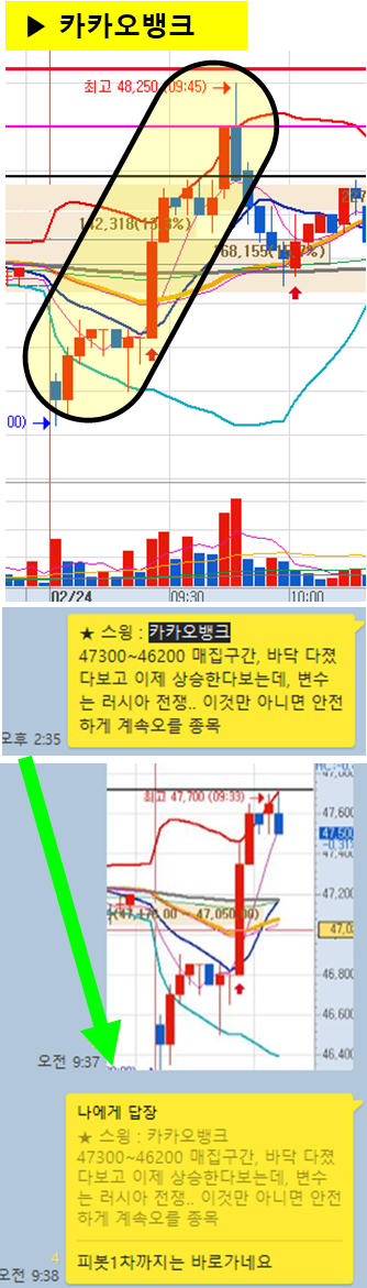 (차트에서 노란색 음영으로 표시된 부분과 카톡 대화 시간을 유심히 봐주세요)