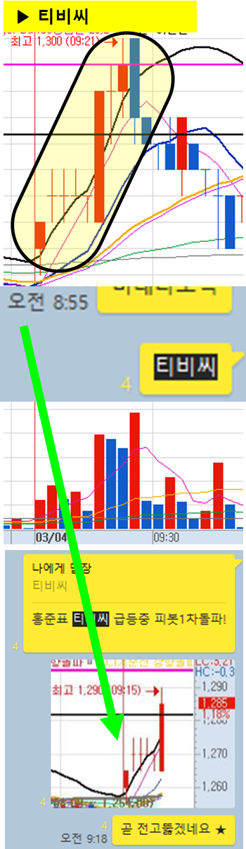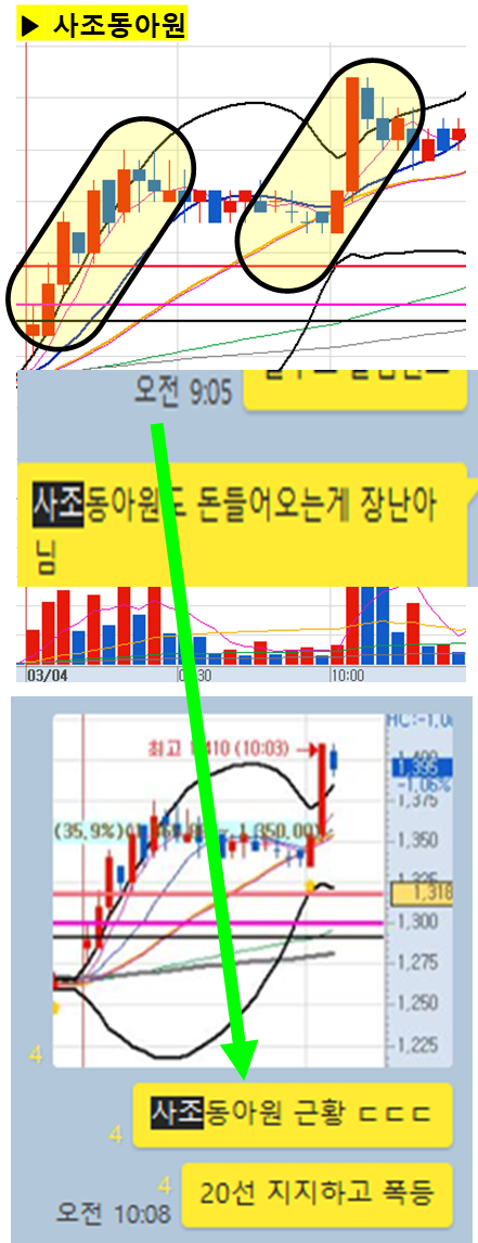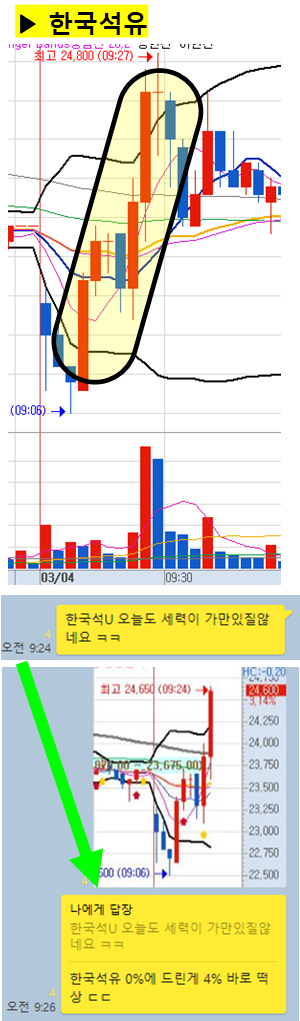 (차트에서 노란색 음영으로 표시된 부분과 카톡 대화 시간을 유심히 봐주세요)