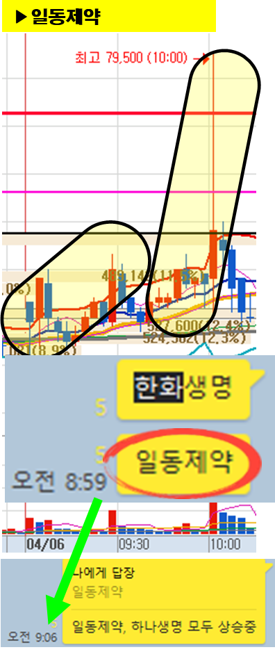 (차트에서 노란색 음영으로 표시된 부분과 카톡 대화 시간을 유심히 봐주세요)