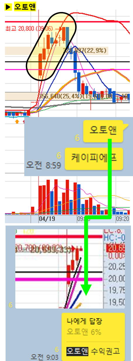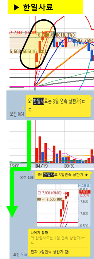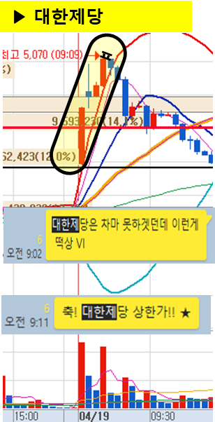 (차트에서 노란색 음영으로 표시된 부분과 카톡 대화 시간을 유심히 봐주세요)