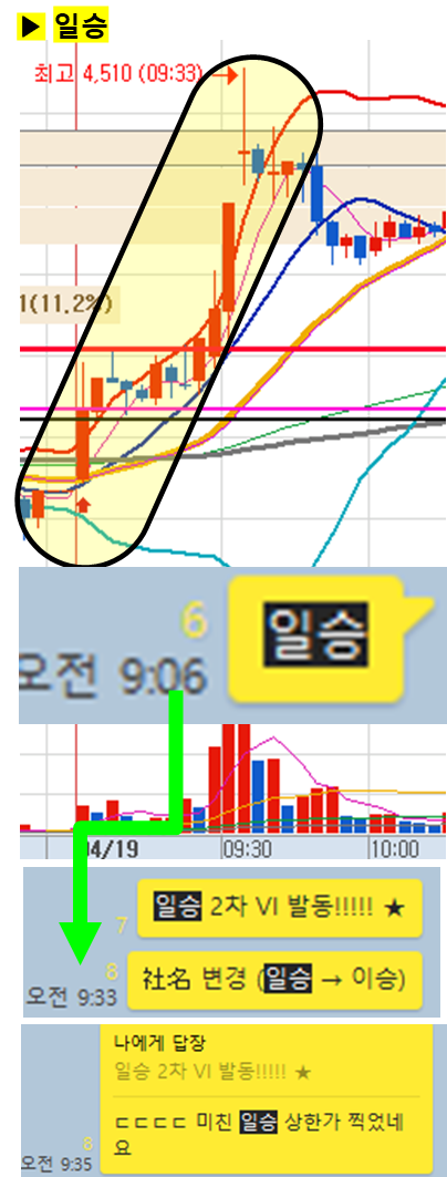 ⊙ 결론 : 시초가 돌파후 9분만에 상한가