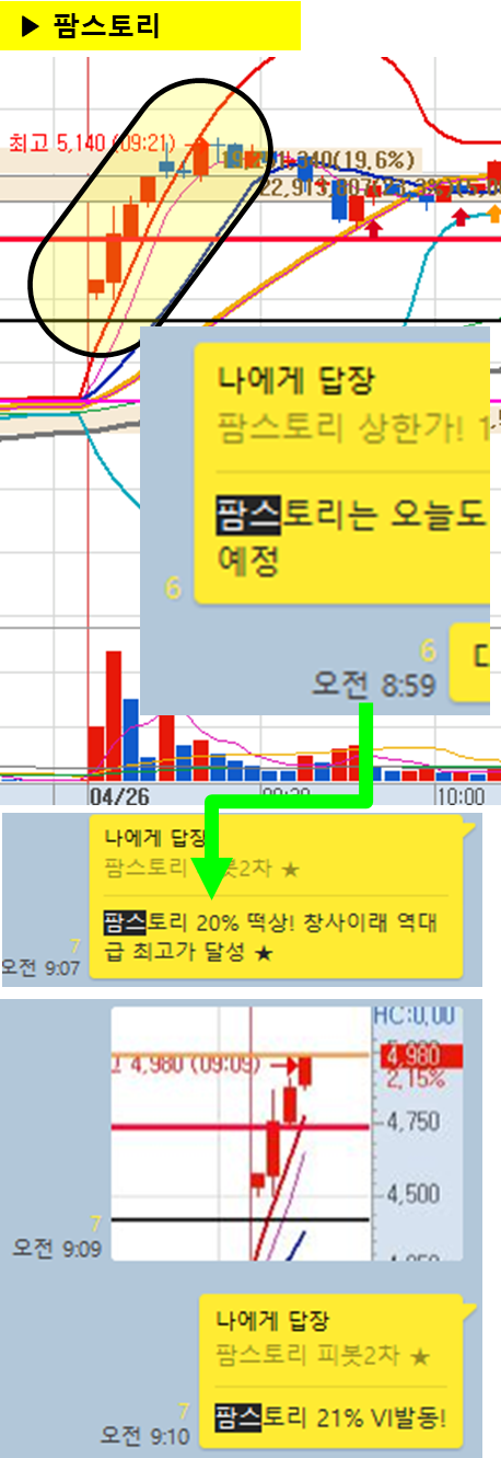 1. 어제 종배관점으로 오후에 단타쳤던 종목