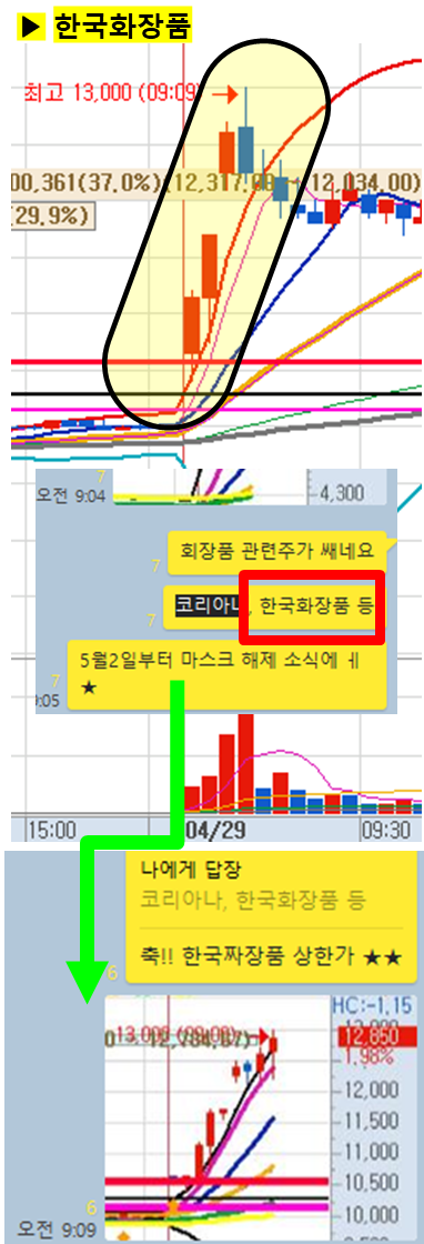 ⊙ 종목명 : 자연과환경, 금호에이치티, 시그네틱스, 네온테크, 코리아나, 한국화장품, 토니모리 등