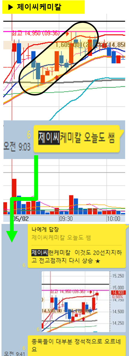 ⊙ 최고점 : 14950원 (9시36분)