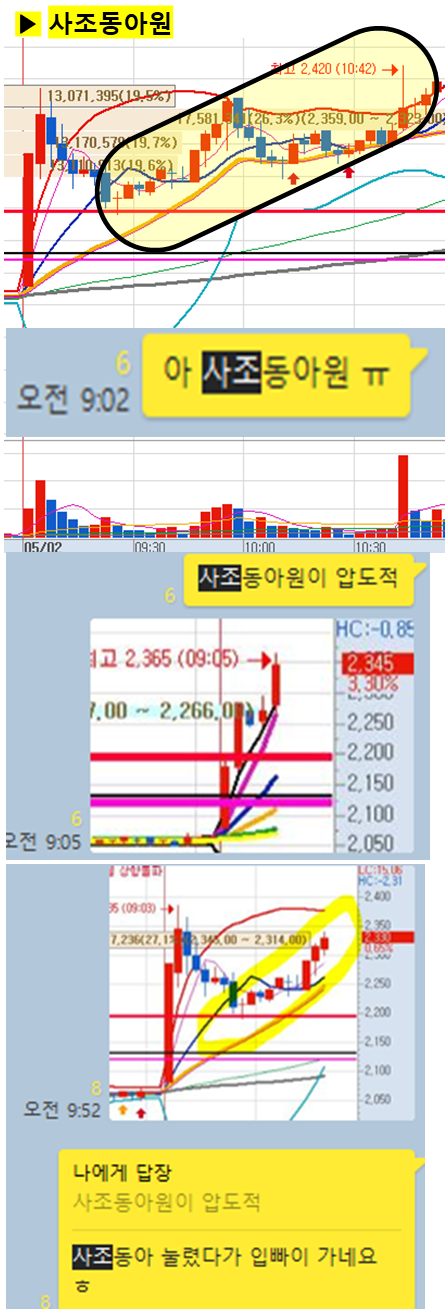(차트에서 노란색 음영으로 표시된 부분과 카톡 대화 시간을 유심히 봐주세요)