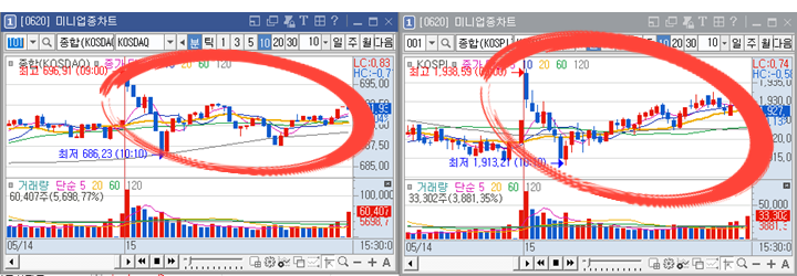 [화면번호 : 0606 – 자동일지차트(매매내역)] 이 기능을 활용한다면 굳이 차트에 네모박스를 그리 면서 매수매도를 별도로 표현할 필요는 없겠지요.
