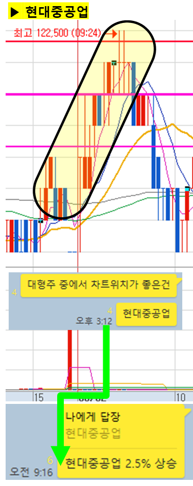 ⊙ 결론 : 전날 미리 언급하고, 다음날 피봇2차저항까지 3%대 상승!