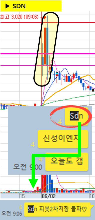 ⊙ 결론 : 아침마다 계속 거래량이 터지는 종목으로 오늘도 피봇2차저항 위로 급등!