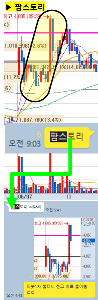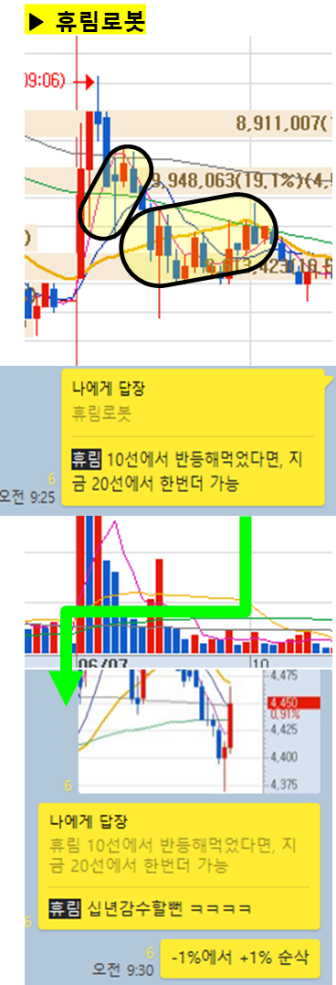 ⊙ 상승흐름분석 : 2% 상승출발 → 9.7%% 눌림 → 4~5% 반등