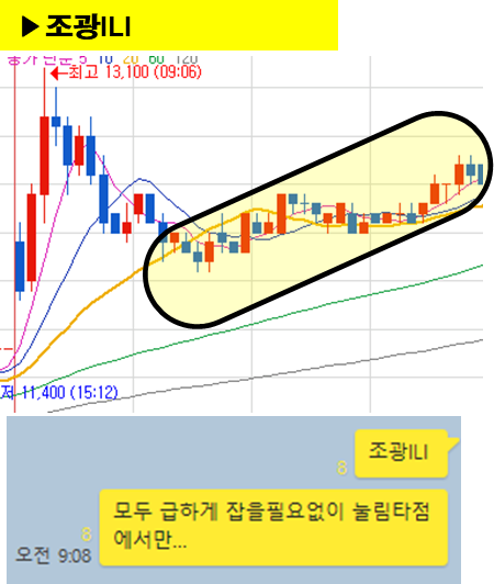 ⊙ 상승흐름분석 : 4% 상승출발 → 12% (3분) →눌림목에서다시 4%상승