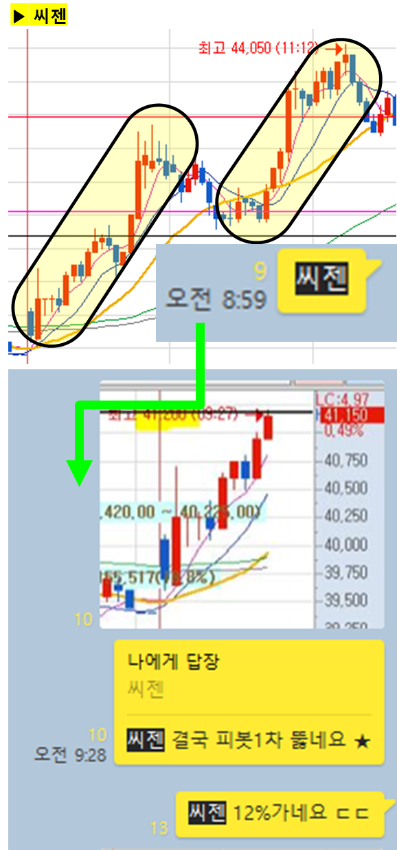 ⊙ 결론 : 시초가 공유후 오전내내 상승흐름
