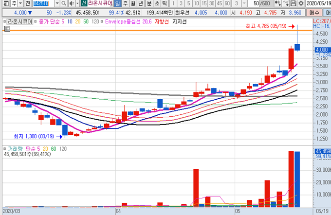 시초가 종목 : 라온시큐어