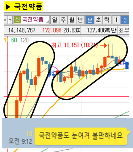 ⊙ 결론 : 어제 장전예상 종목으로 공유하였고, 오늘도 언급 45분만에 15% 폭등!