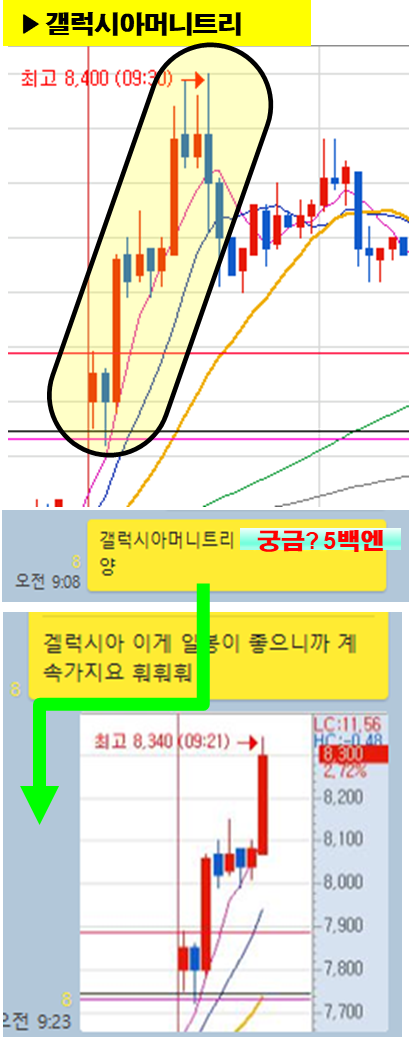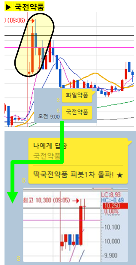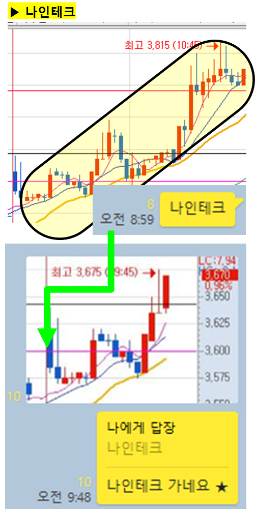 ⊙ 결론 : 장 초반 공유후 6분만에 7%상승 발생 (지난주도 공유한 종목)