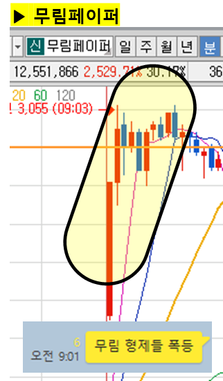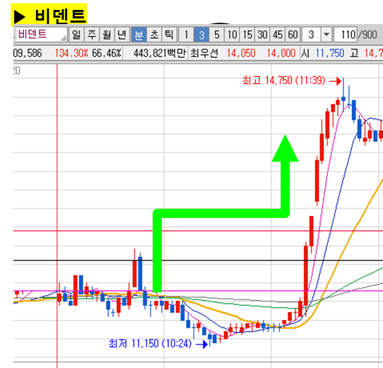 ⊙ 결론 : 시초가 돌파후 3분만에 18% 급등
