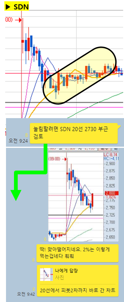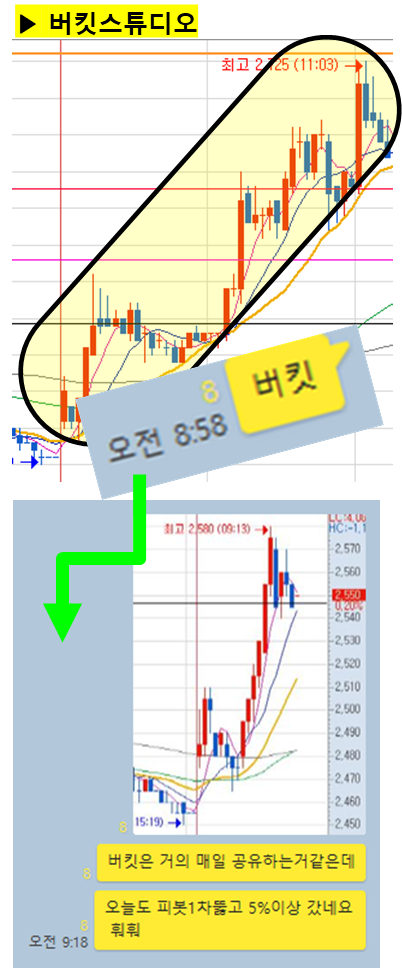 ⊙ 결론 : 적절한 매수가격 공유이후 안전하게 3%이상 상승