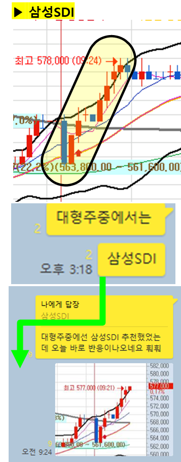 ⊙ 결론 : 지난주 금요일 대형주 스윙관점으로 공유한 이후 오늘 바로 상승이 나오는 중