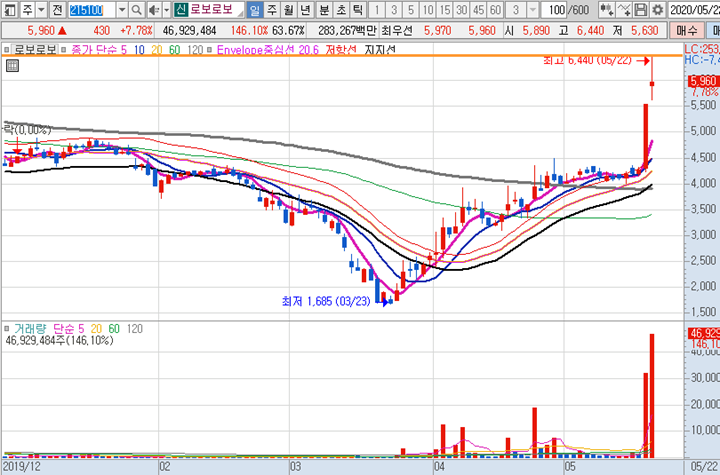 로보로보의 일봉차트 입니다. 전일에 상한가 진입이후에 오늘은 그 보다 더 많은 거래량으로 장중 역사적인 신고가에 진입한 종목입니다. 추가적인 신규진입하기에는 너무 고가이므로 당분간은 피해있도록 하겠습니다. 그리고 과거 이종목을 언제 거래했는지 찾아보니 4월 20일, 4월 23일 매매내역중에 로보로보가 있었습니다.
