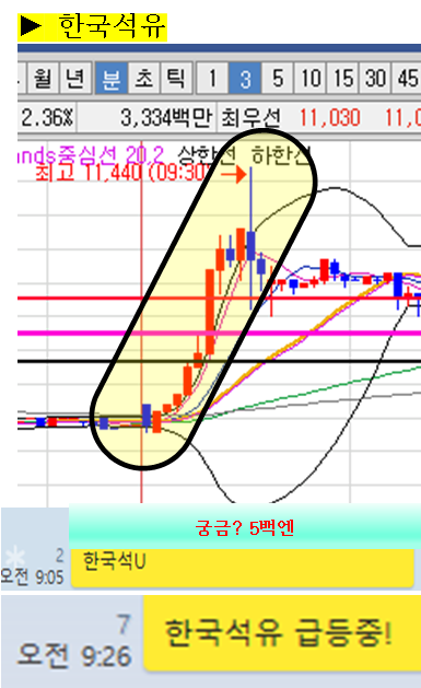 오늘은 1%상승 출발이후 5분만에 8%급등이 바로 나왔습니다.