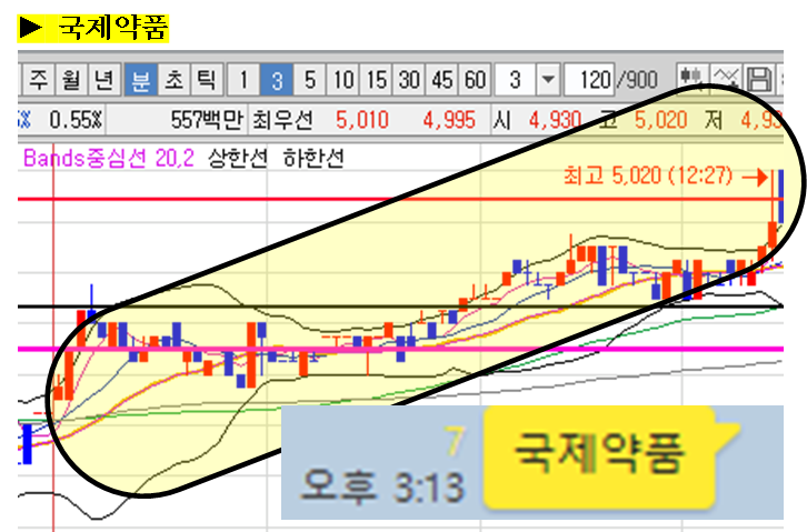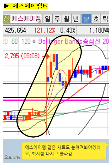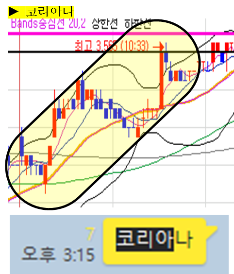 주식종목을 공유한 이후 주식의 움직임에 대해 그 현장을 생생하게 박제하여 생동감 있게 보여드리겠습니다. (차트에서 노란색 음영으로 표시된 부분을 자세히 봐주세요)