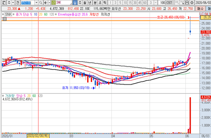 SNK 일봉차트 입니다. Snk는 고배당 소식에 상한가가 나온종목으로, 제가 너무나 좋아했던, 어릴적 오락실에서 하던 게임들을 만드는 회사입니다. 상장 이후에 첫 배당을 공시했는데 배당금이 무려 20%에 육박할 정도로 고배당을 준다고 하여 상한가로 직행하였으며 오늘 또한 시초가에 대단한 거래량이 터지면서 수익구간을 2번이나 준 종목입니다. 1년 동안년동안보유만 해도 배당을 20% 가까이나 주기 때문에 다들 이 종목을 보유하고 싶어서 안달이 난 상태인데, 일봉상으로는 다소 위험한 위치까지 상승해있기 때문에 단타로 접근 시에는 지금이 아니라 19000원 타점까지 기다려봐야 할 듯합니다.. 그러나 충격적인 고배당 소식은 이 주식을 갖고싶게 만든 확실한 요소임은 틀림이 없습니다. 누구나 다들 아실만한 킹오브화이터즈, 아랑전설 시리즈, 사무라이 쇼다운, 메탈슬러그 등 왕년에 오락실에서 잘 나가던 게임을 만들면서 동전을 쓰러담은 기업인데, 이렇게 고배당 소식으로 다시 이슈가 되니 다시보게 되었습니다.