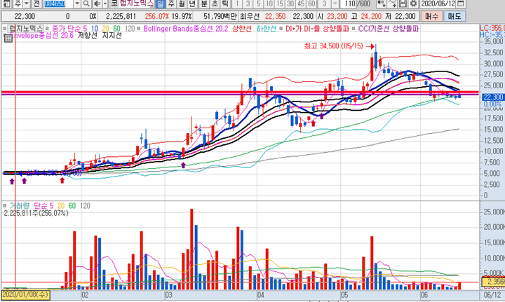 랩지노믹스 일봉차트 입니다. 일봉의 위치는 그다지 좋은 모습은 아니나 오늘 시초가의 급등은 앞으로 다시 반등할 만한 여력을 보여주는 분위기였습니다. 분자진단 헬스케어 전문기업인 랩지노믹스가 코로나 19진단키트 수출시장을 확대하고 있으며 그 주요 배경은 코로나19 바이러스가 잠잠해지지 않고 오히려 더 확산되고 있는 것입니다. 이러한 분위기가 있는한 이러한 관련 종목들은 다시 급등시세가 나올 확률이 있습니다.