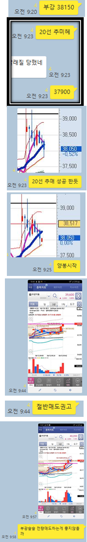 녹십자엠에스 3분봉 입니다. 어제 종가배팅 자리라고 판단하여 만원으로 종가배팅 금액을 제시했습니다. 그러나 간밤에 미국장 폭락으로 인해 국내주식시장이 장 초반 큰폭으로 하락된 상태로 시작을 하게되어, 종가배팅한 이 종목의 경우에 침착하게 대응하느라 애를 썼습니다. -3프로 이상으로 빠진 상태로 시작한 녹십자엠에스의 경우에는 미국장 급락 영양으로 인해 투자심리가 위축되며 장초반에 함께 빠졌던 것 같은데, 곧바로 자기 자리를 찾아서 다시 상승추세로 뻗어 나갔으며, 최고점인 10600원까지 상승했는데, 매수 추천가격에 비해 6%의 상승률이 나왔으며, 시초가 대비해서는 10%가까이 상승한 종목입니다. 저는 장초반에 하락으로 시작하게 되어 심리적으로 이 종목은 본전으로만 나와도 좋겠다 생각한게 잘 못 이였습니다. 한참 더 수익을 실현할 수 있는 종목을 1%의 수익에 만족하고 나왔는데, 매도 하고 나니 계속 상승을 하며 안타깝게 하였습니다.