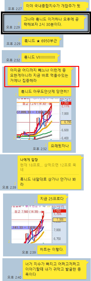 그럼 오늘 공략종목에 대해 이해하기 쉽도록 카카오톡 당시 대화내용과 차트를 보면서 설명 드리도록 하겠습니다.