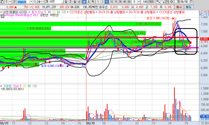 서연 일봉차트 입니다. 오늘 역대급 신고가가 나온 종목입니다. 장막판에 급락이 나오기는 했지만 의미있는 지지선을 지켰으니 내일 다시 기대해볼만한 종목입니다.